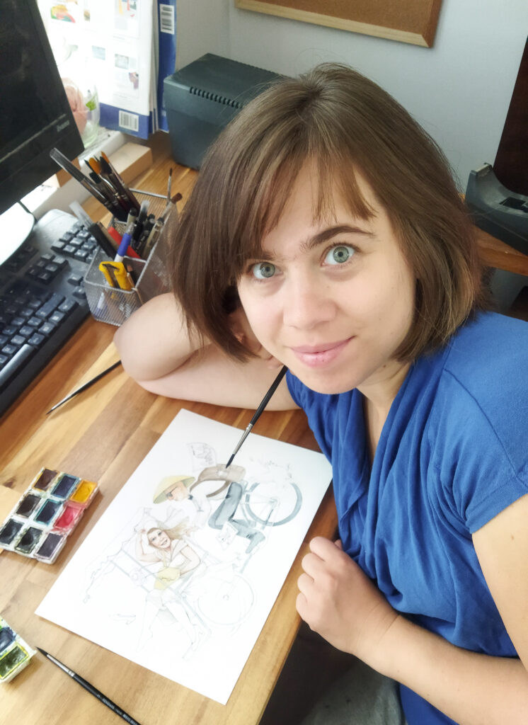 Tusz jest to kolejne narzędzie, bez którego nie wyobrażam sobie pracy twórczej. Wykorzystuję go do line-artu. Ostatnio najczęściej używam stalówki po moim dziadku (najlepsza), sięgam też po najlepszej jakości pisaki kreślarskie. Do tuszu mam ogromny sentyment, ponieważ nierozerwalnie kojarzy mi się z moimi studiami architektonicznymi. (Jeśli chcesz dowiedzieć się jak to się stało, że pani architekt została ilustratorką kliknij TUTAJ (link do O mnie))